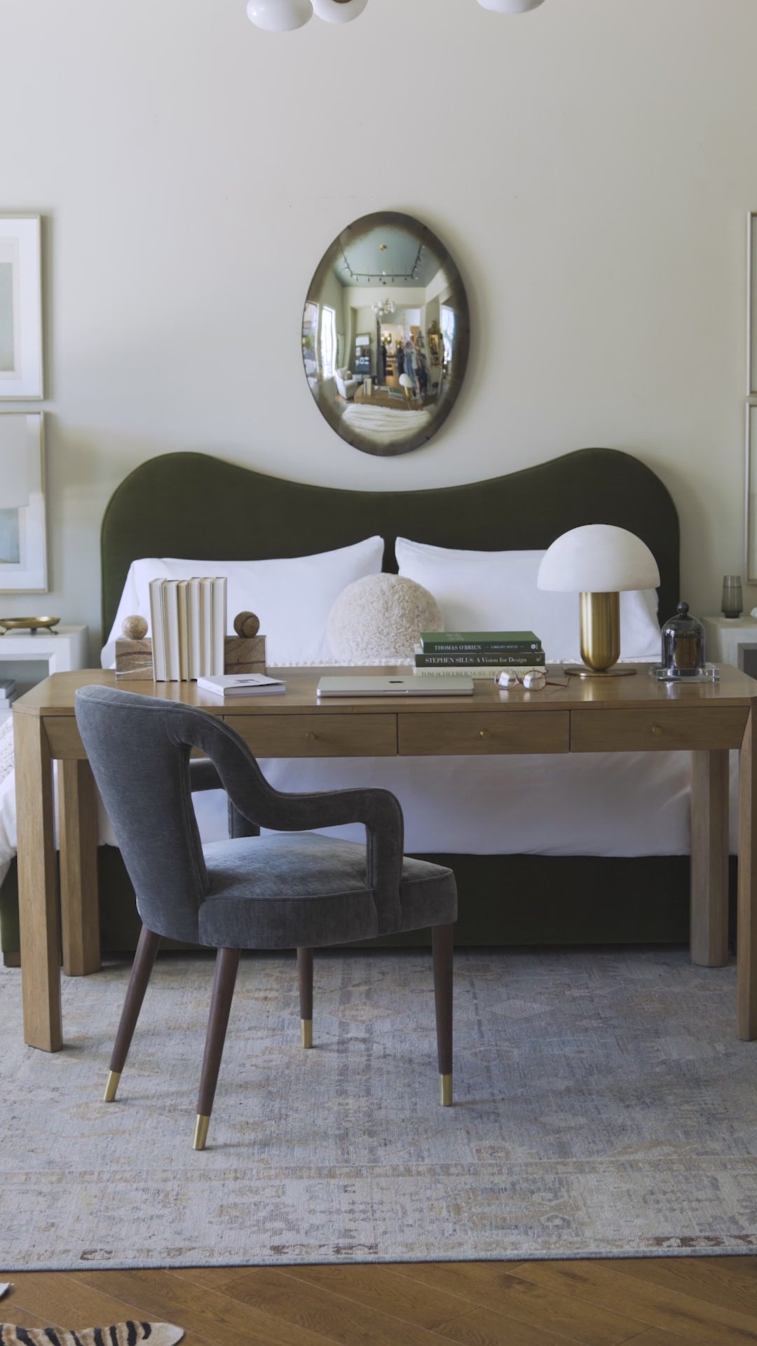 Obsessed with the angles on this desk! It’s so sleek yet so timeless! I love the bleached oak it’s the perfect shade! Not too orange just perfect!