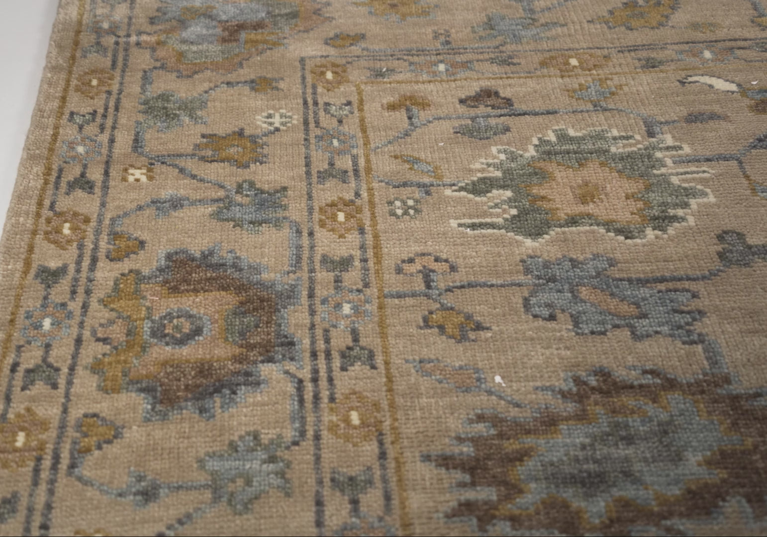 The Farah Rug is a hand-knotted Oushak, known to be more casual amongst knotted rugs. Full of all the best neutrals and perfectly versatile, it styles well into bedrooms, family rooms, under kitchen tables, and living rooms. Its traditional yet relaxed motif gives an easy, comfortable depth and touch of brightness to any room.
