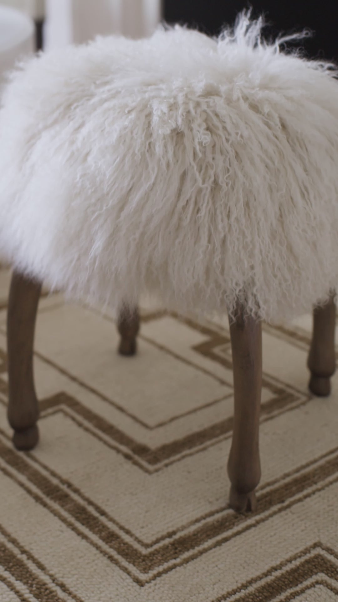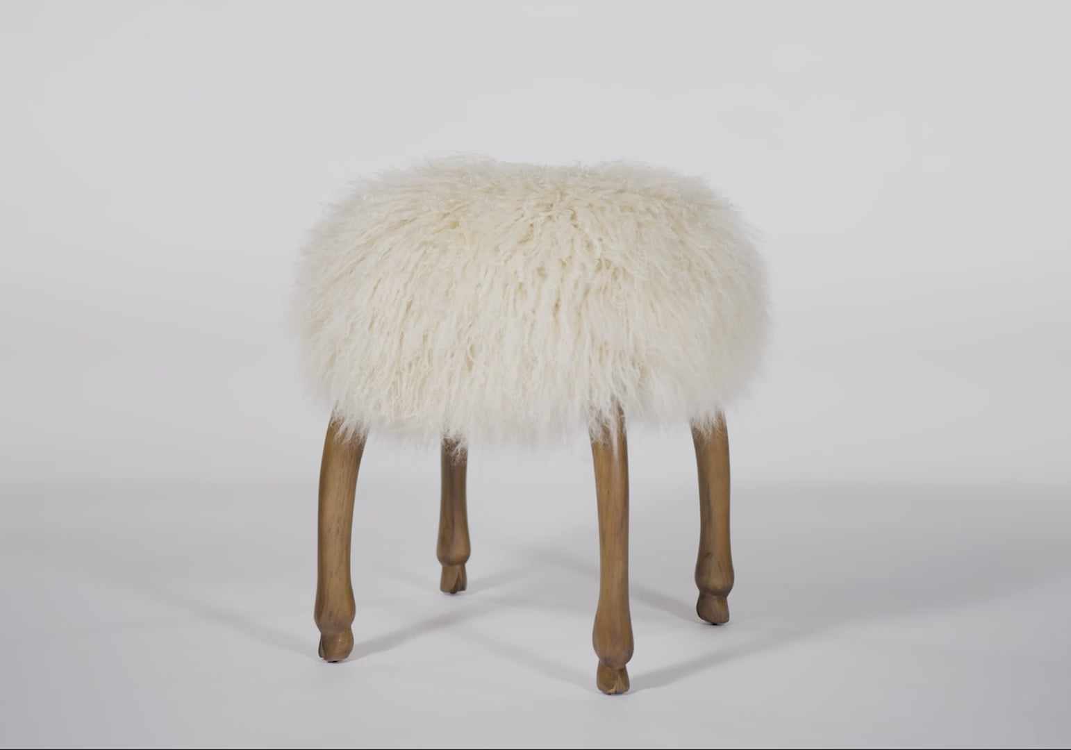 The Fifi is the ultimate accent stool with its long, luxurious Mongolian sheepskin seat elevated by four animal hoof feet. Its playful design gives personality, effortlessly adding texture and interest to small spaces. Style in a living room, kid room, bathroom, in front of a fireplace, or under an entryway console or table.