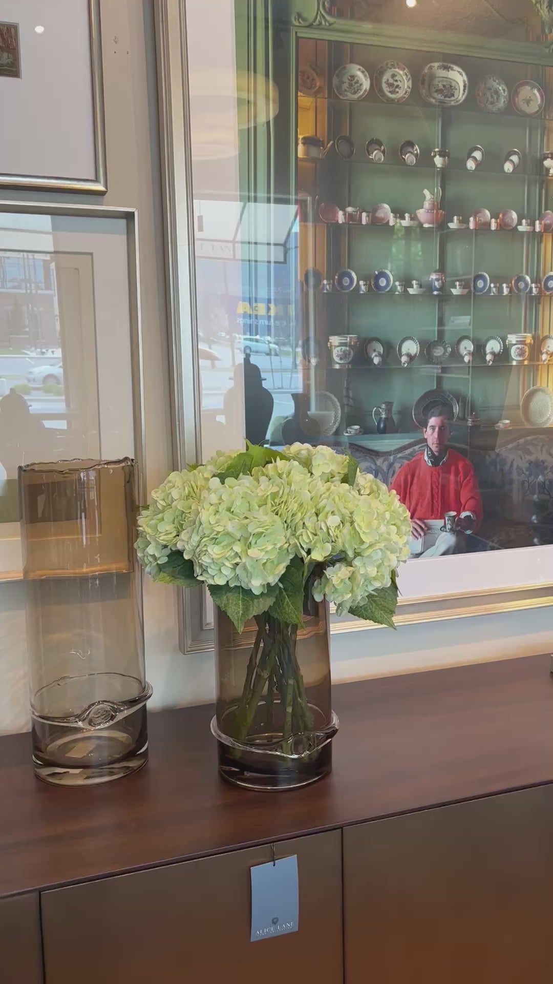 This faux hydrangea lends a fresh, ethereal touch. Its tall stem supports a beautiful blossom of soft green flowers complemented by lifelike leaves. Create a sophisticated look by clustering multiples together or pairing with the white hydrangeas.