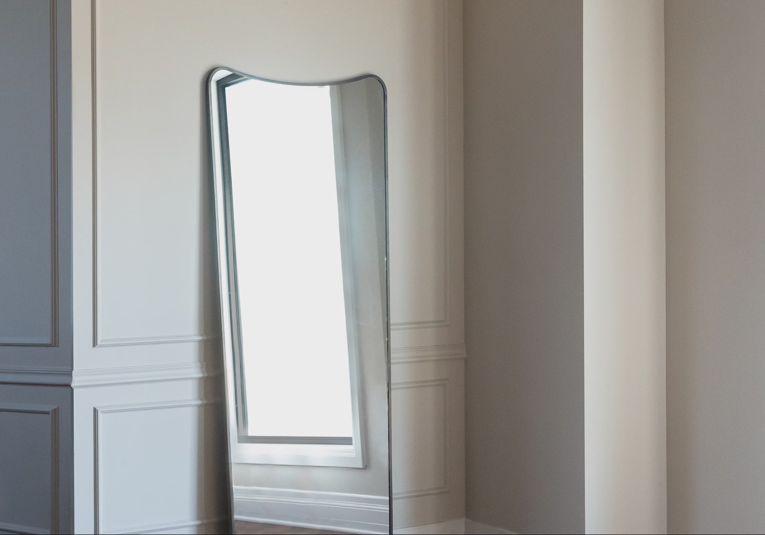 I am obsessed with my Iris Floor Mirror! I have low ceilings and this almost 7' mirror really helps my entry look double in size at least. I haven't seen a mirror with this shape before which helped me fall in love with it. It is shockingly heavy, and the metal frame is high quality. Having it anchored to the wall, I know that this isn't going anywhere. It's the perfect entry mirror for me to give myself one last check before heading out the door each day.
