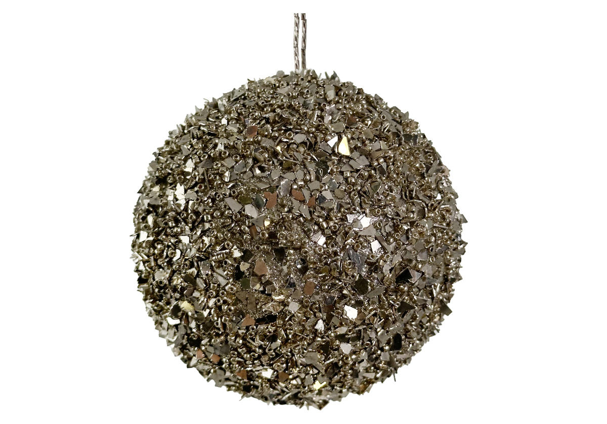 SILVER GLITTER BEAD BALL ORNAMENT | 4"