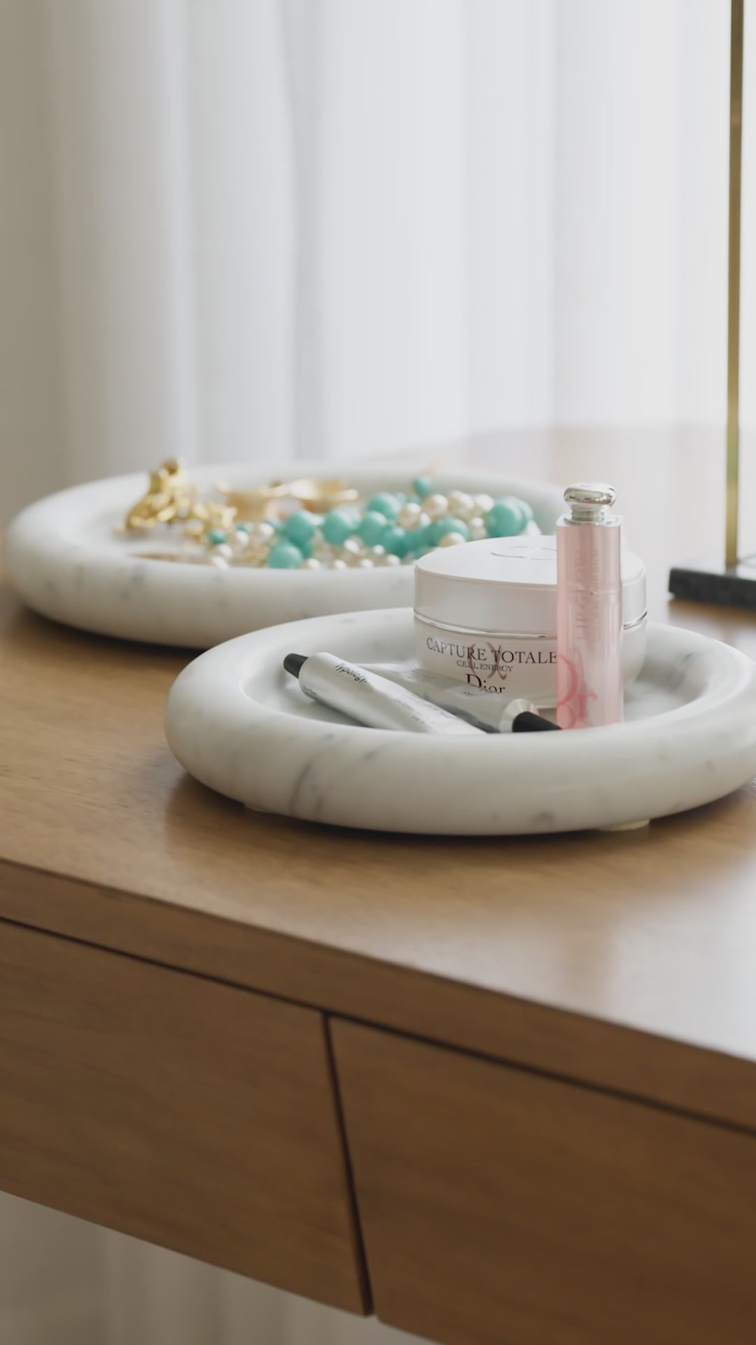 The Milan is an effortless classic with its smooth Bianco Carrara solid marble form complemented by a bullnose edged. Its chic, rounded form is incredibly versatile, styling easily as a candle dish, perfume tray, jewelry holder, serving dish, or catchall bowl. Available in two sizes, display each alone or pair multiples together for a collected look.