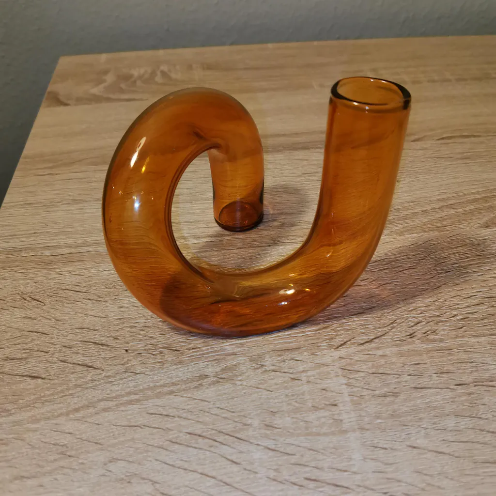 This candle holder makes an eye-catching statement with its incredibly dimensional form. Crafted entirely from glass and finished in brown-toned amber, it lends an elegant, intentional touch to any space. Available in four distinct designs, style alone, pair a matching set, or mix and match together for added visual texture.