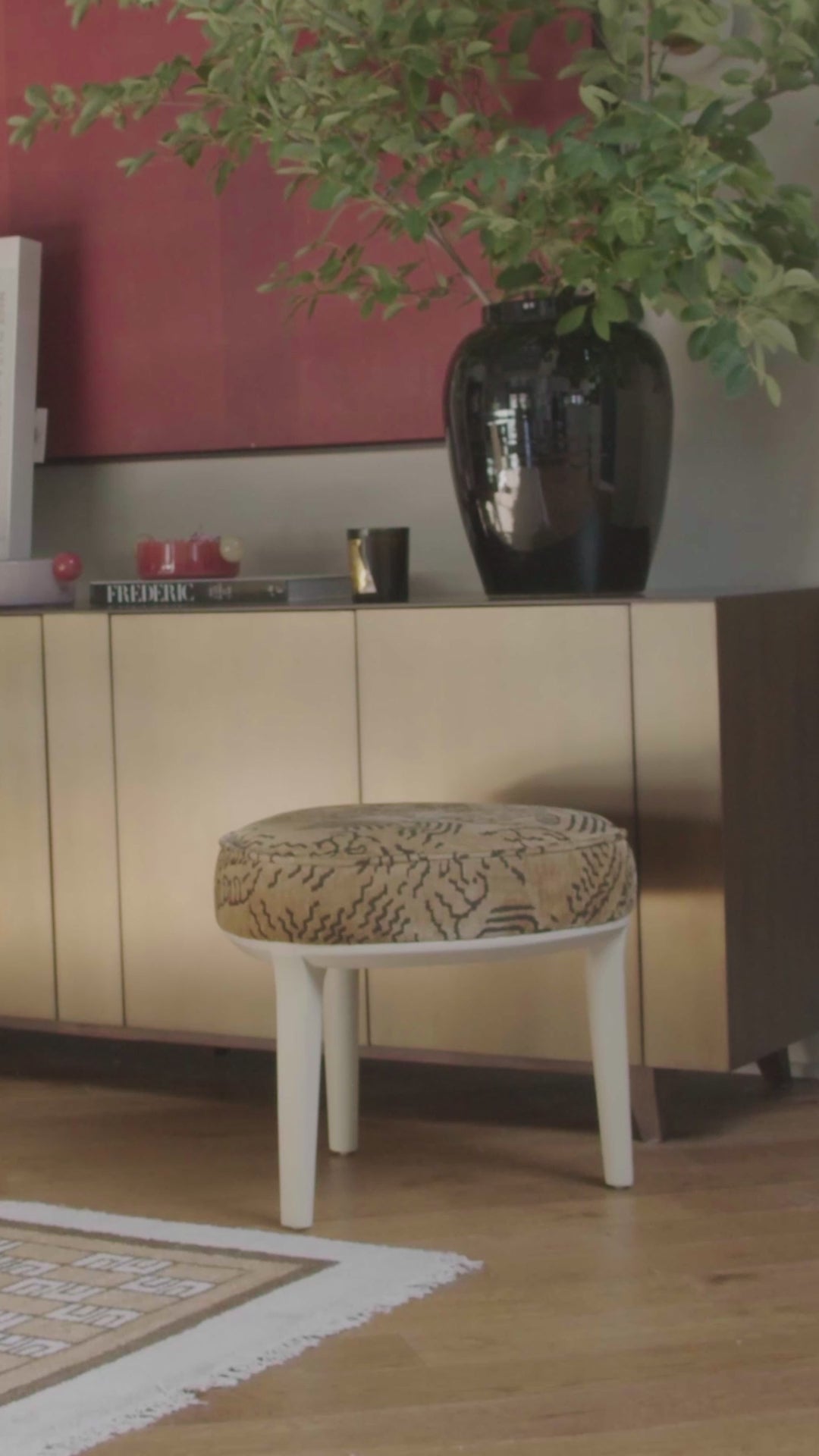 The Stevie Ottoman is that quiet kind of standout—sculptural, unexpected, and endlessly versatile. Shaped like a guitar pick with softened edges, it tucks beautifully under a center hall table, at the foot of a favorite chair, beneath your entry console, or even at the foot of a twin bed. Wrapped in a deconstructed tiger print and grounded on white, beveled legs—it’s neutral, but never boring.
