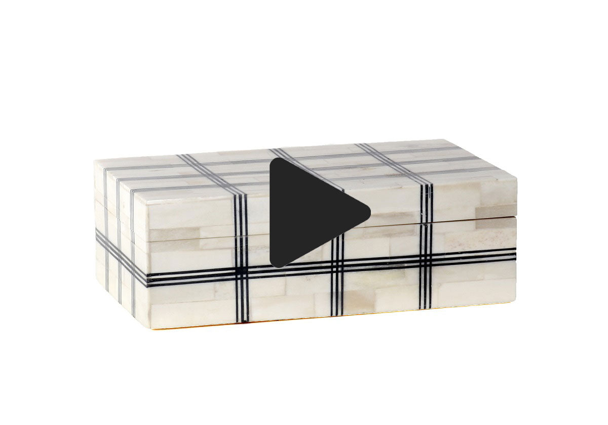 The Domino Plaid Box lends a look of its own, featuring bold black stripes on a natural bone background. This piece creates ample dimension while also providing a catchall for small treasures or jewelry.