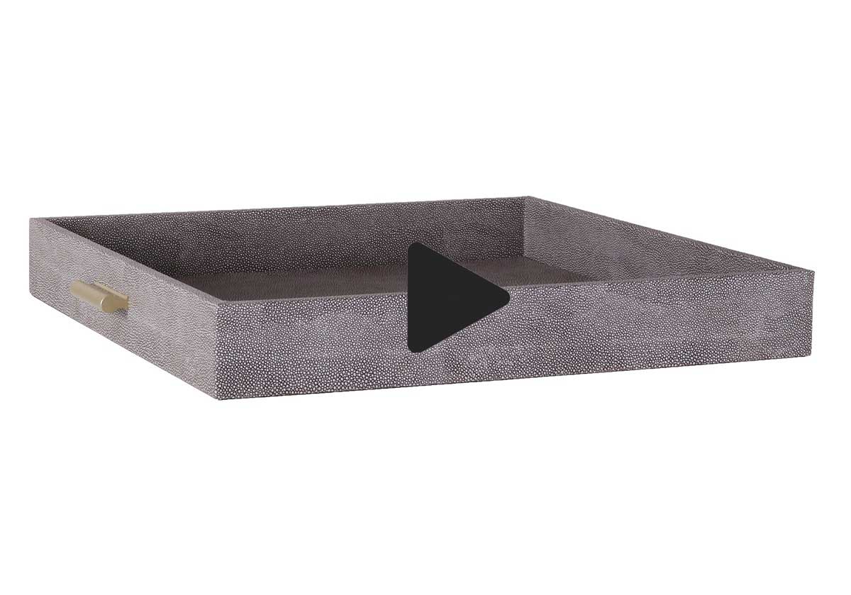 The Sting Tray is a handsome, versatile piece with its muted slate amethyst color, textured shagreen design, and two opposing brass handles. Its spacious form easily styles with books, beads, and tabletop decor.
