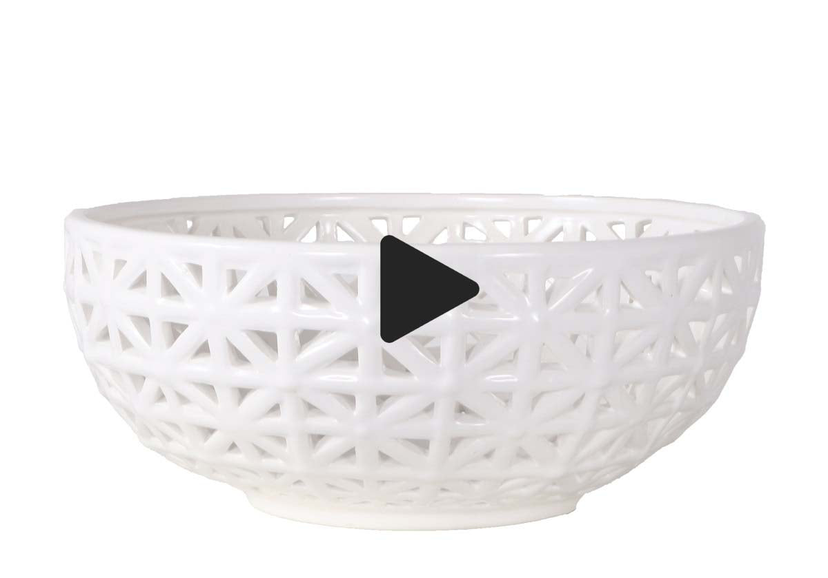 This elegant bowl lends a tasteful touch with its glossy white porcelain form and textured lattice pattern. Style alone or pair the different sizes together for a cohesive look.