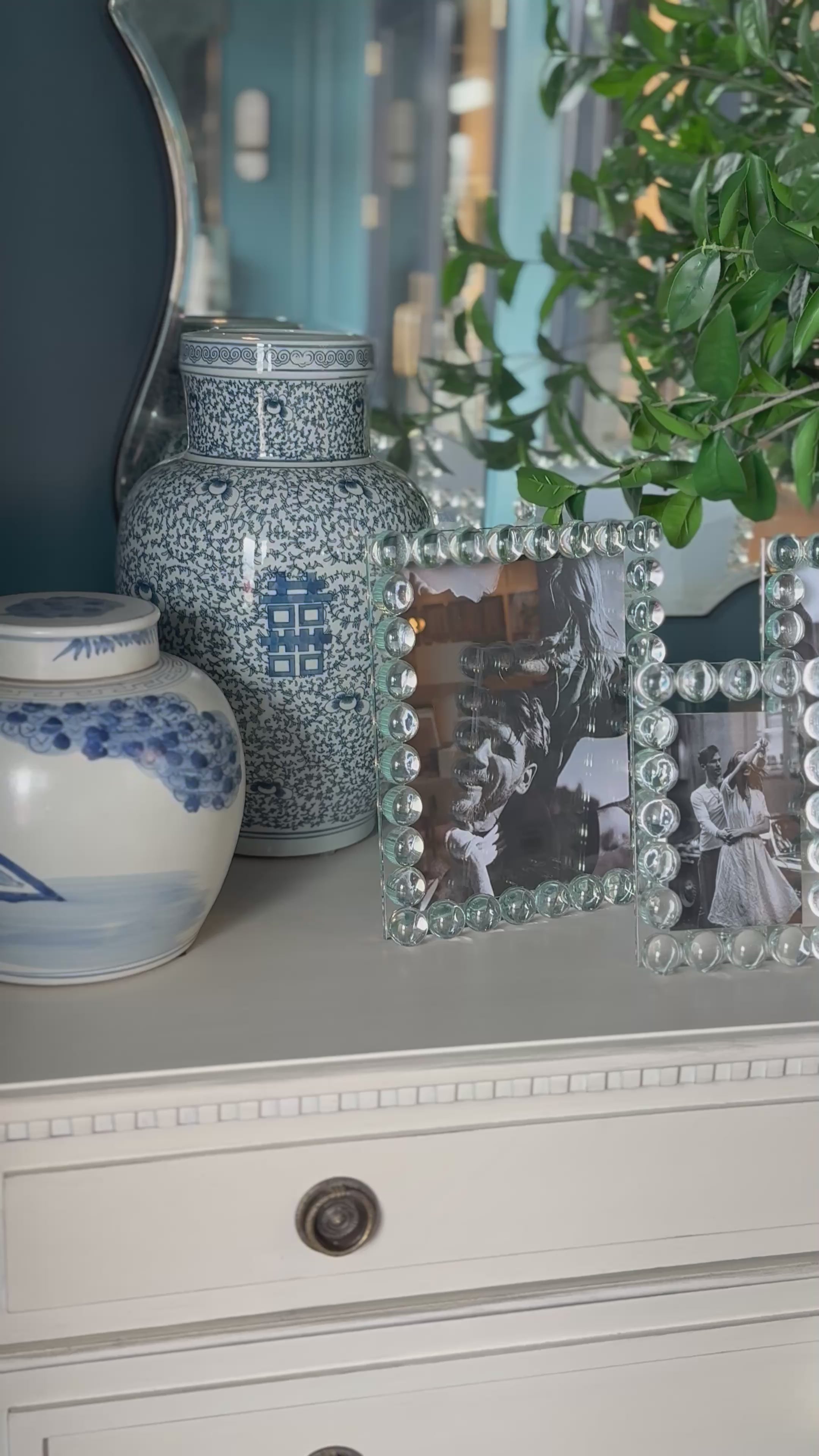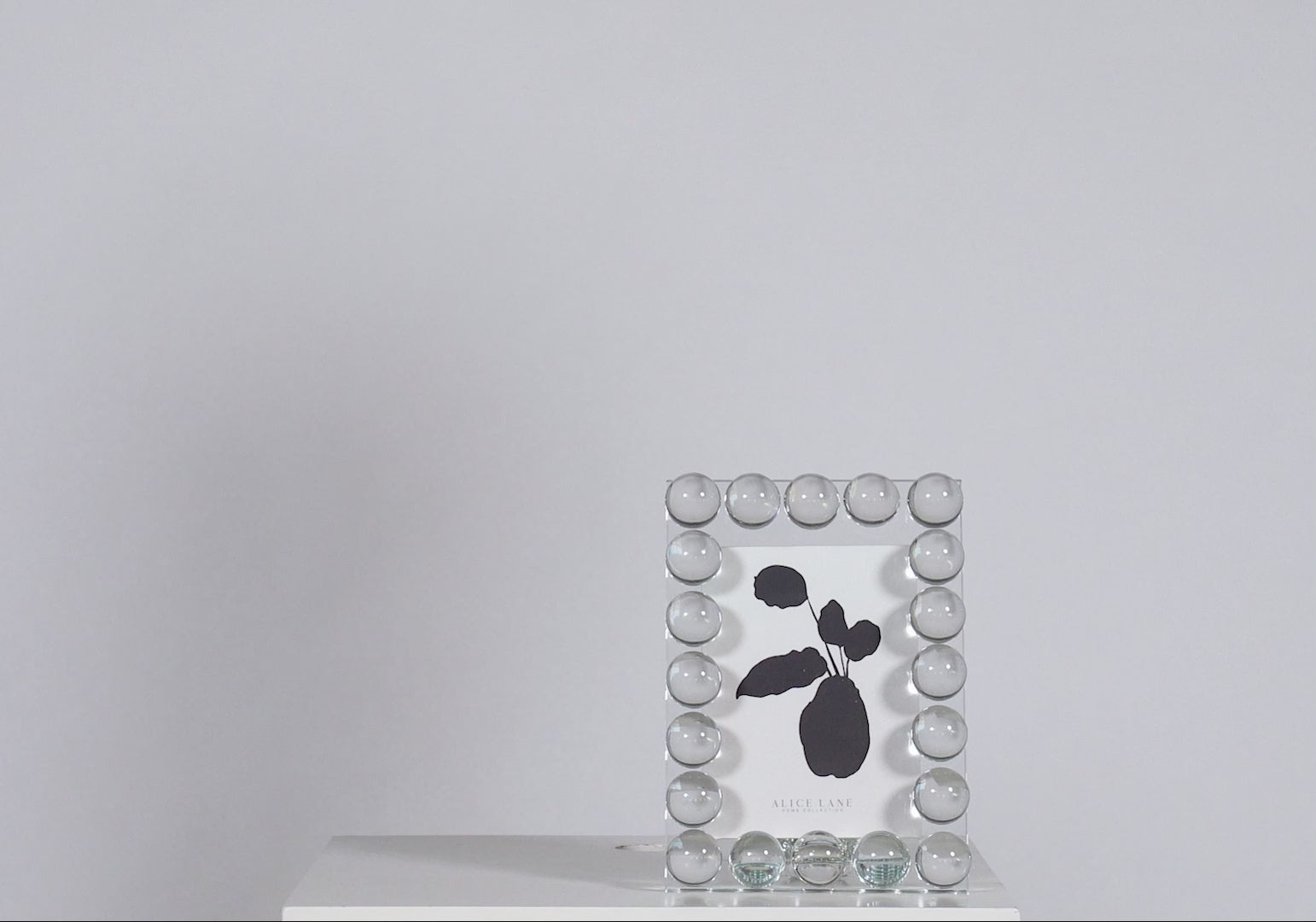 This sleek frame elevates a traditional frame with its striking design. Its dimensional crystal orbs crafted from solid K1 crystal, lend texture and an individual look to framed photos. Style one alone or pair two together on a bookshelf or console table for an added touch of elegance.