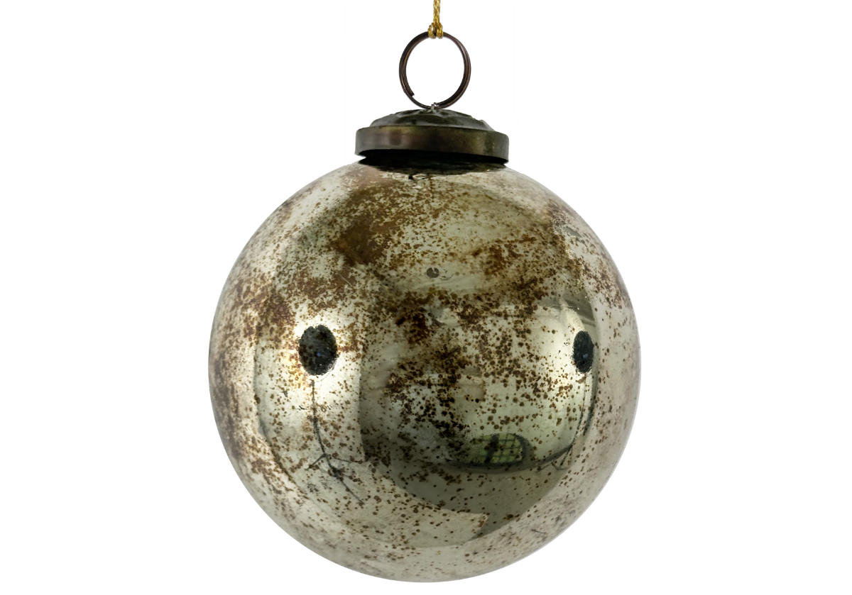 AGED SHINY SILVER GLASS BALL ORNAMENT