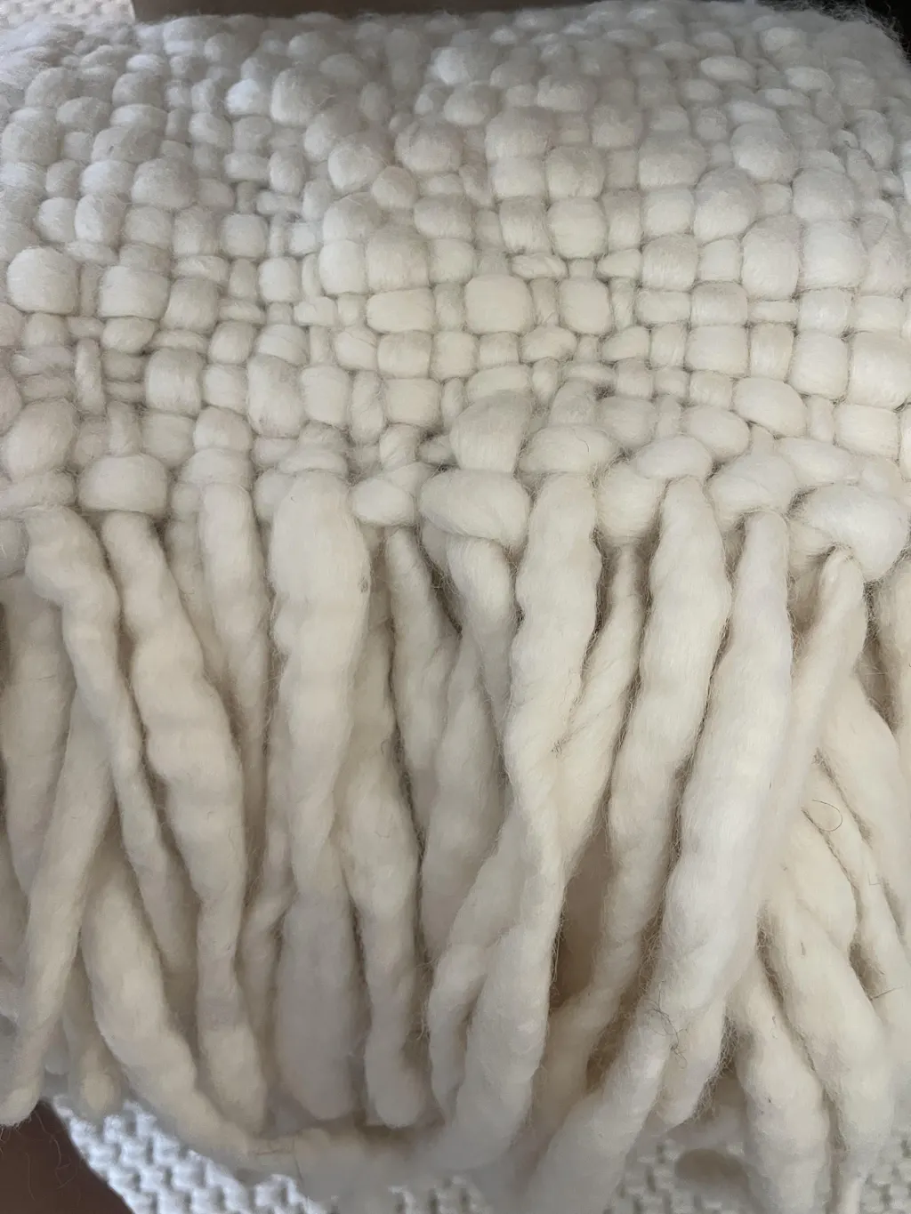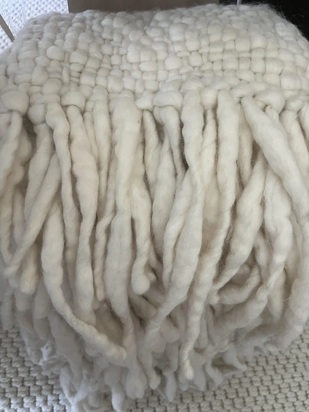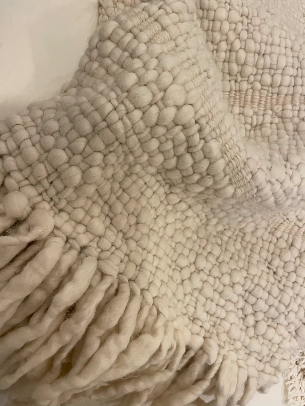 Exclusively made for Alice Lane by artisans in India, the Ralph Throw boasts a generous, chunky wool woven form and a soft, natural coloring. Its substantial body and long fringe detail provide a sophisticated layering piece to your sofa and we love them on a chaise or cocktail ottoman. Expect minor variations in size due to handmade nature.