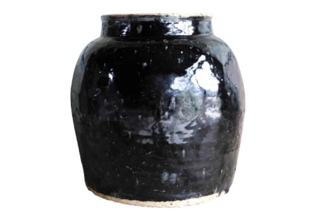 VINTAGE OIL POT WITH BLACK GLAZE