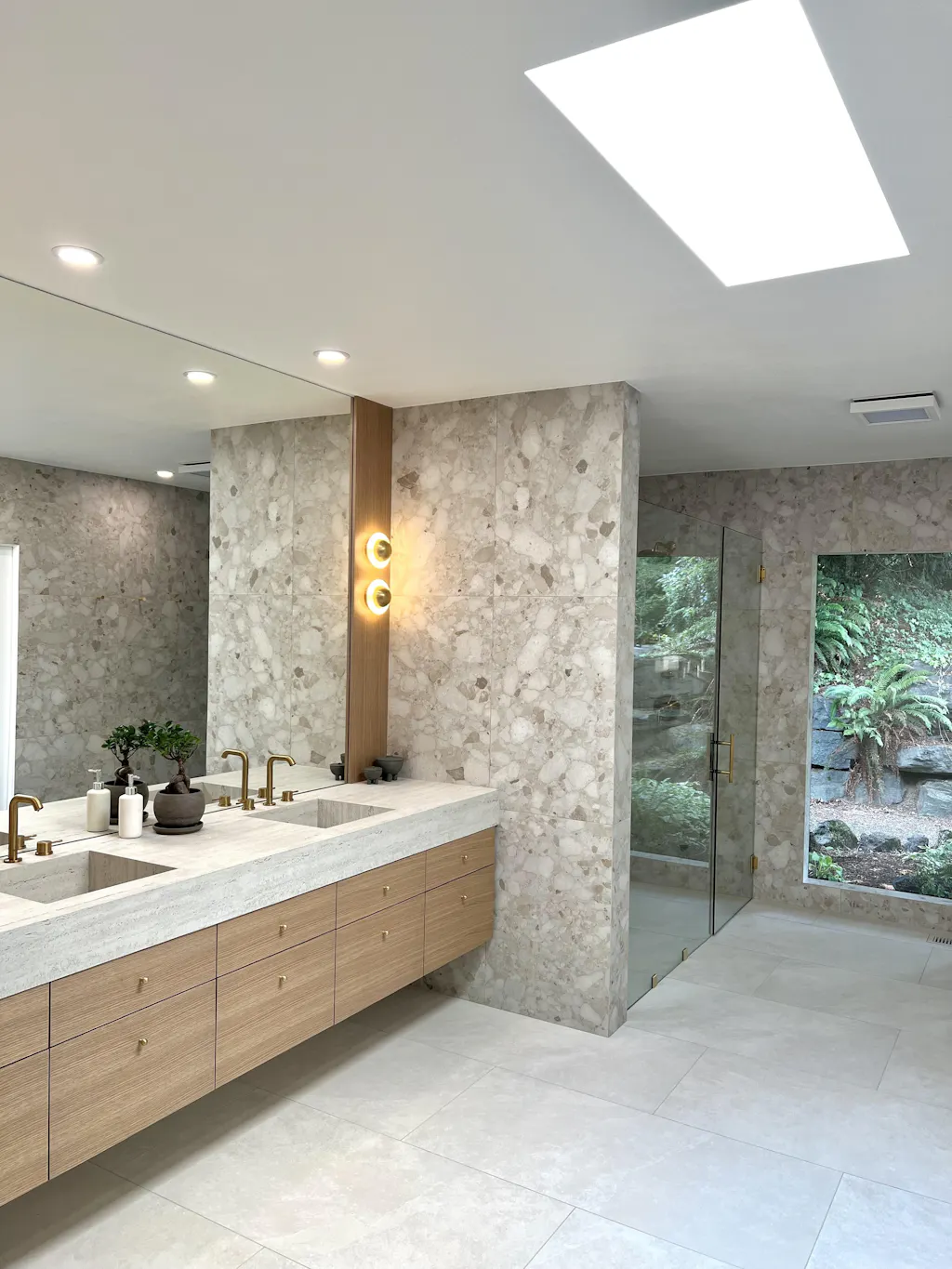 Due to natural stone, expect variations in coloring and patterning for a truly one-of-a-kind addition. Organic aging and extended exposure to water can cause natural changes to color and texture of the living brass finish. Light: LED 6W 3000k