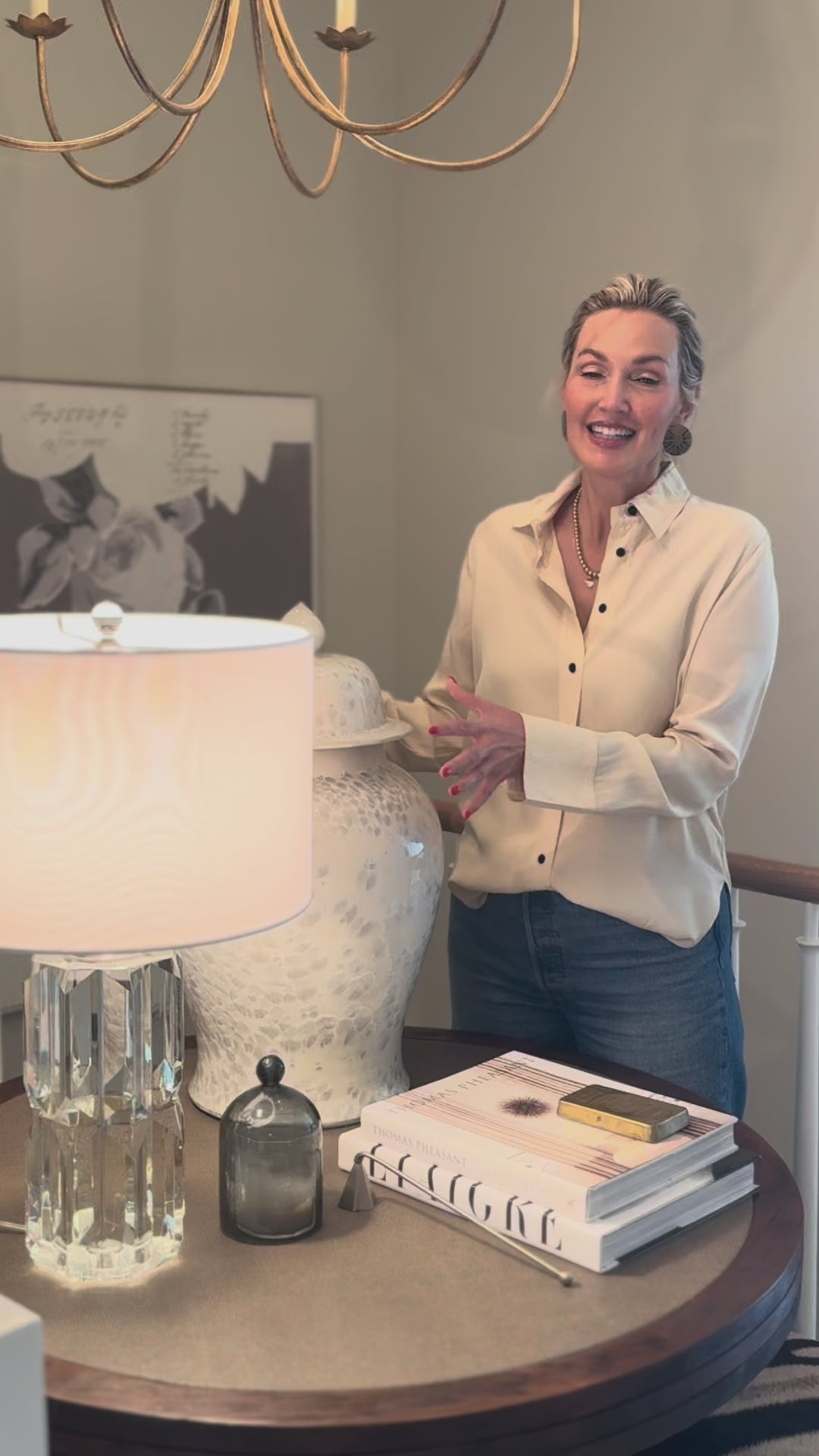 The leggy Nina Console, paired with Phoenix Mirrors and collected ginger jars, is statement making in any entry.