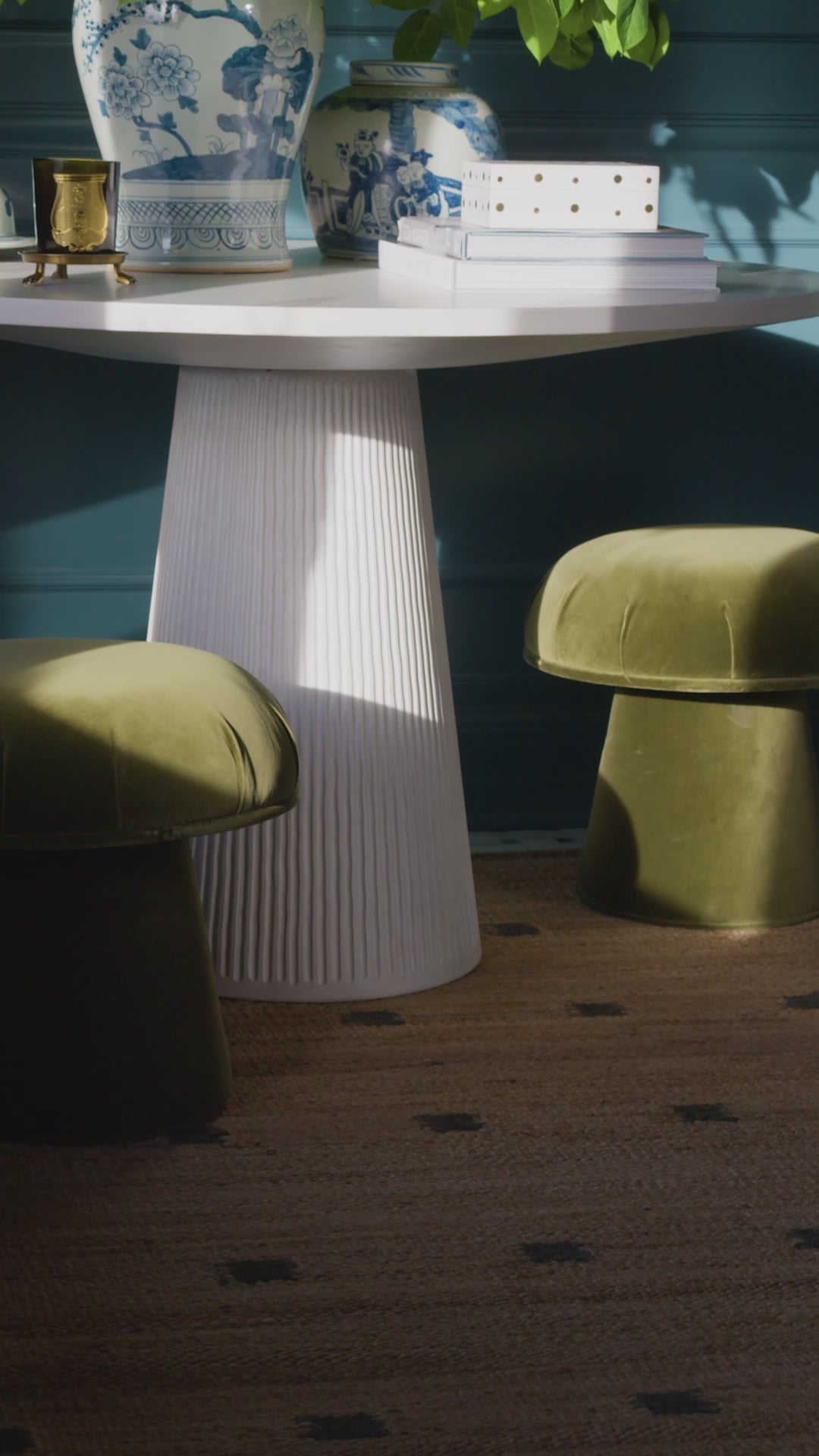 The Lucca Centerhall Table makes a grand entrance with its hand-carved fluted base and smooth top, finished in an artisan applied finish that resembles white plaster. Elevated two inches above dining height, it creates a dramatic focal point in entryways and closets.