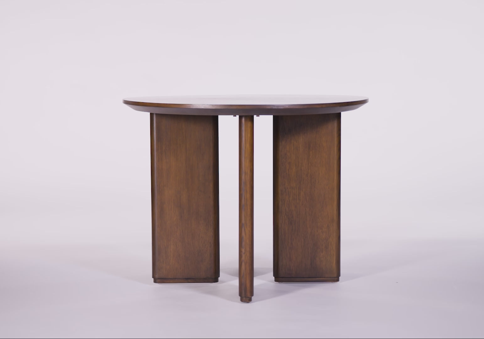 The Griffin Side Table blends timeless design with modern elegance. Crafted from white oak veneer and finished with a rich dark walnut stain, its generous scale makes a striking statement. The large surface offers ample space for a table lamp and other accessories, while the sleek blade legs, paired with inset plinth detail, it adds an elevated touch of sophistication. Perfect for enhancing any living room or bedroom with its refined, functional beauty.