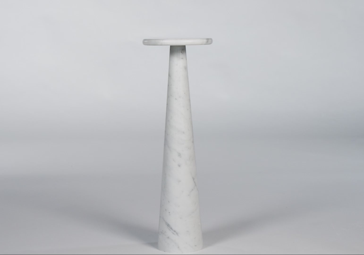 Chic and elegant, this perfectly sized spot table is the ultimate in luxury and versatility. Carved from Carrara White marble, its tapered pedestal base is complemented by a petite bullnosed edge top, becoming an effortless addition to living rooms, bedrooms, offices, and sitting areas. Its simple silhouette gives shape, easily holding a drink, book, or phone. Style next to a lounge chair, sofa, or accent chair for a timeless touch.