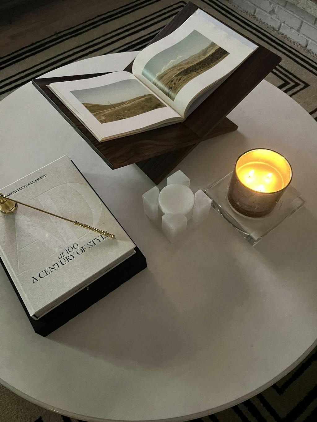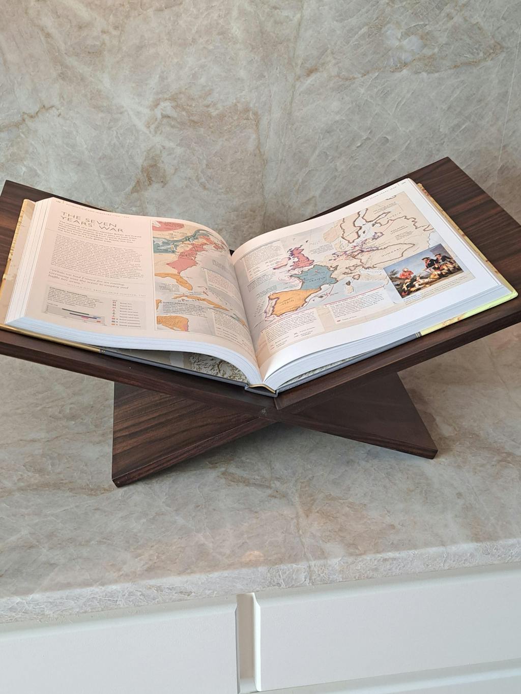 This generous book cradle effortlessly displays large coffee table books with its spacious size and strong form. Crafted from walnut wood, each piece features a unique natural design.