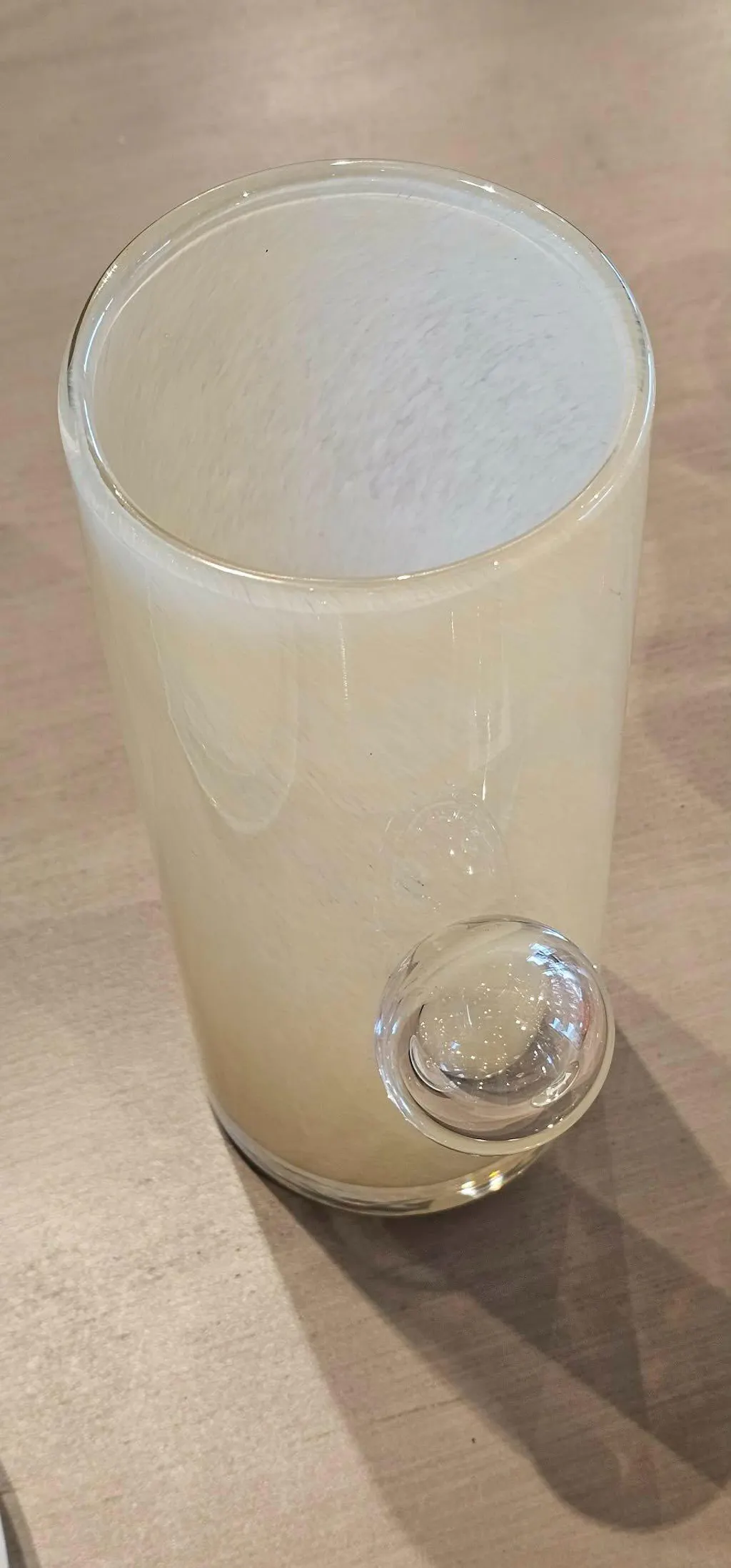 Handblown in thick butter-yellow glass, the Bolla Vase blends sculptural charm with refined whimsy. A clear bubble detail adds a playful touch, while its rounded form softens any surface. Available in short and tall, style one solo or group multiples for a curated, color-rich moment on a console, dining table, or bedside.