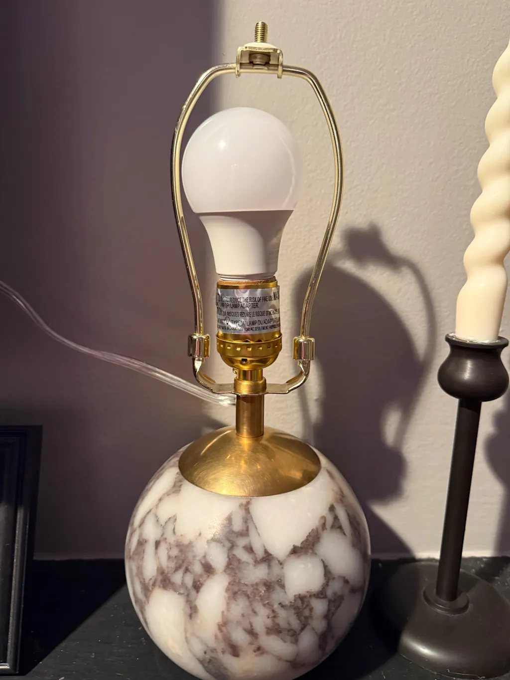 Materials: Calacatta Viola Marble, Antique Brass, Linen Shade