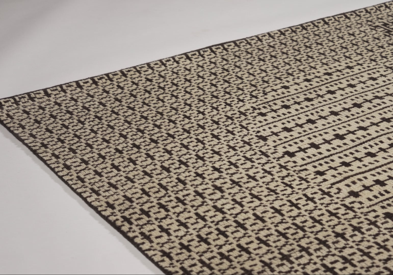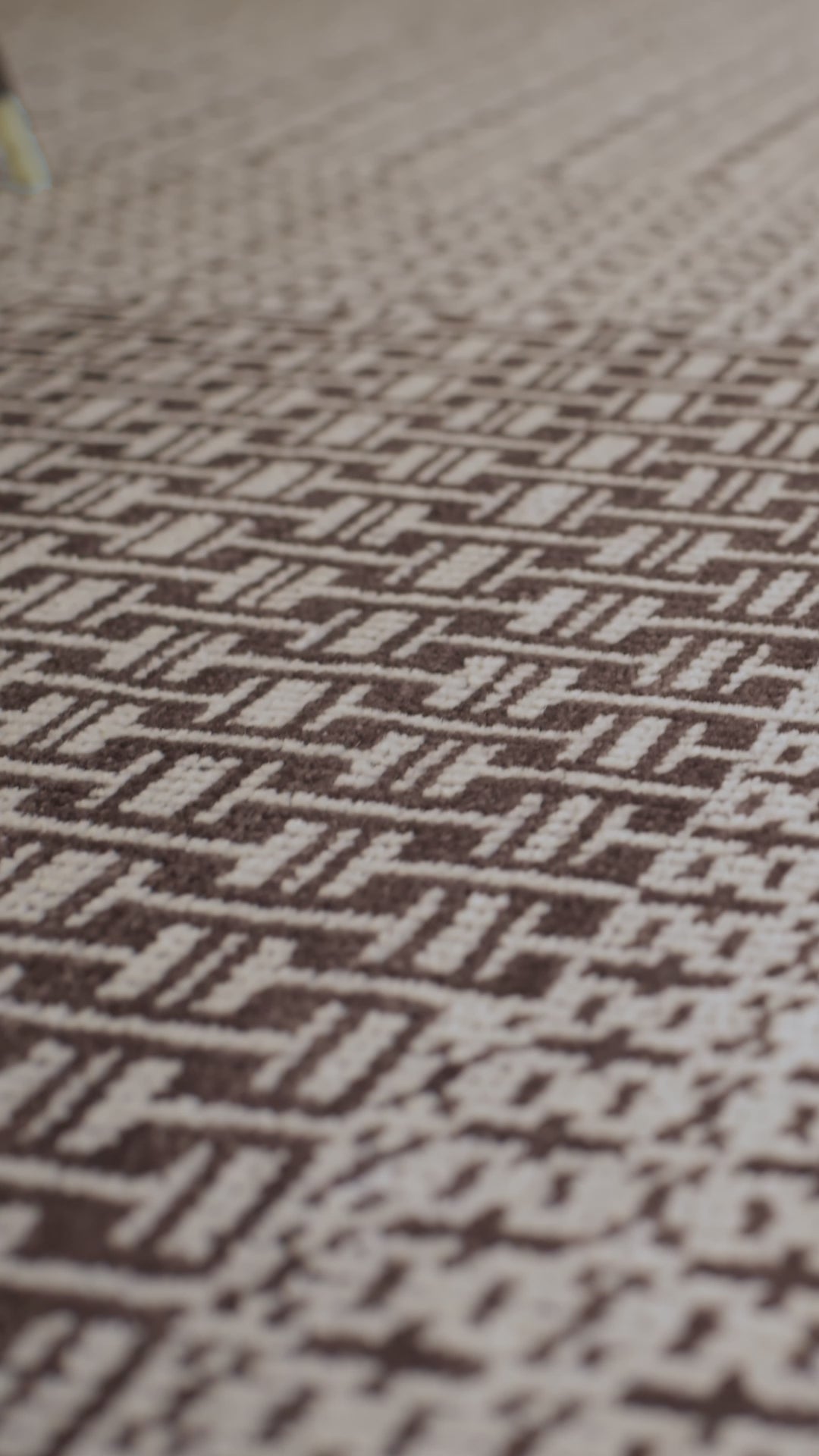 The Chainmail Rug is a must-have with its intricate, interlocking bronze tone on a neutral biscuit colored field. Incredibly versatile, it looks great in offices, living rooms, under dining tables, and even melts beautifully into bedroom scenes adding visual texture and dimension.