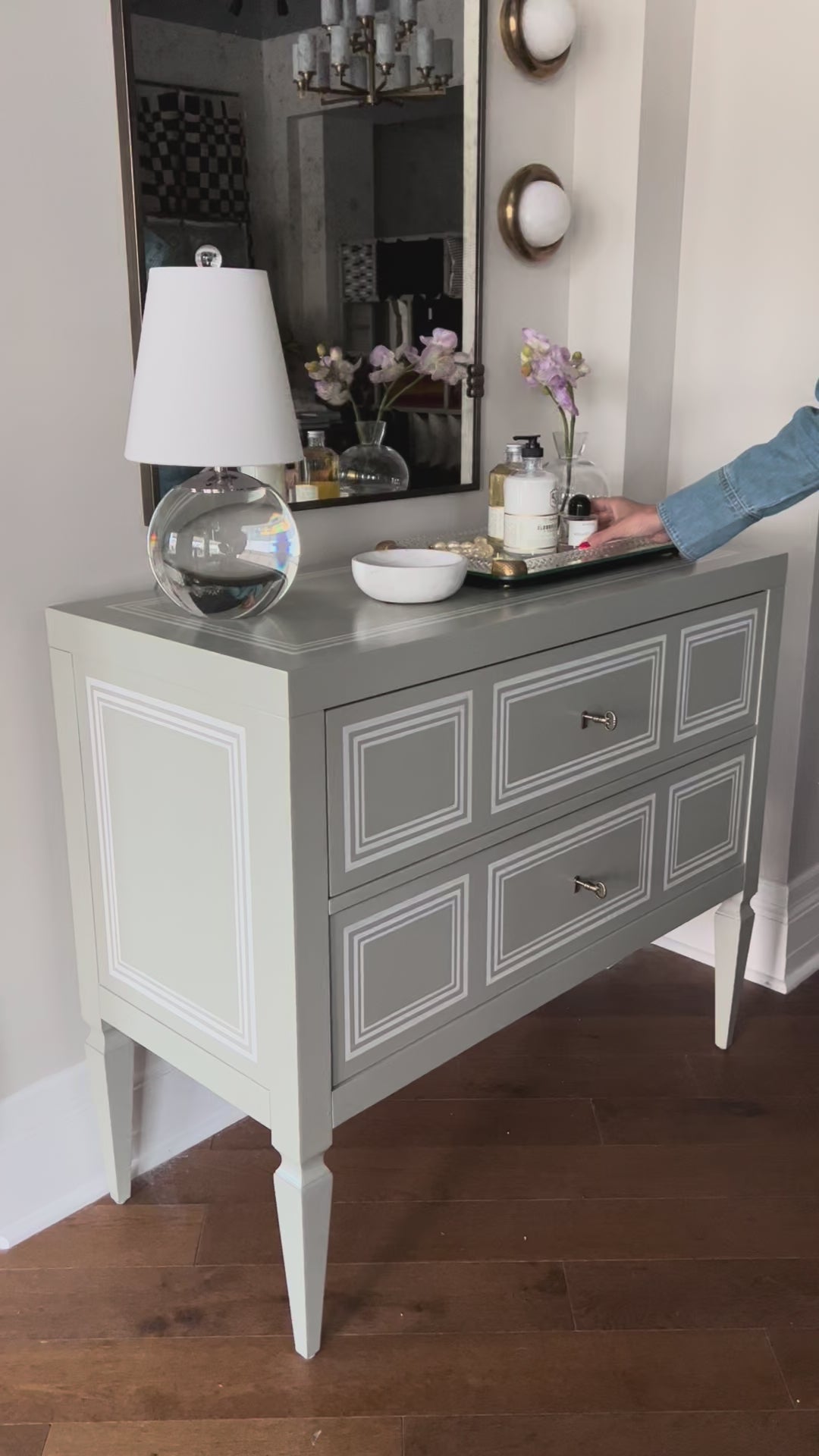 My client wanted something a little different for their bathroom, and doing a two stack of the alys sconce on each side of the mirror has us in love! It is the perfect size for either a small bathroom or perfect for multiples in a bigger bathroom. The alabaster gives it the perfect amount of glam that every person needs in their life.