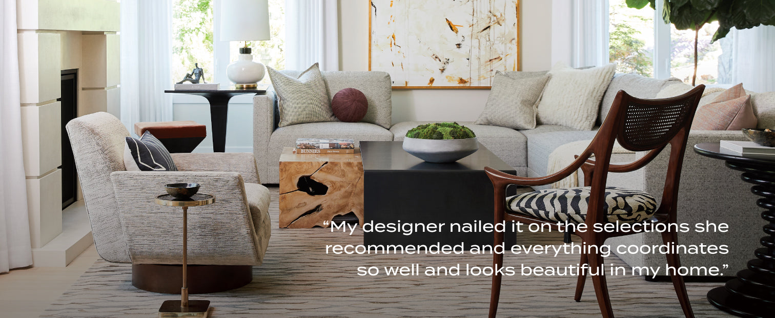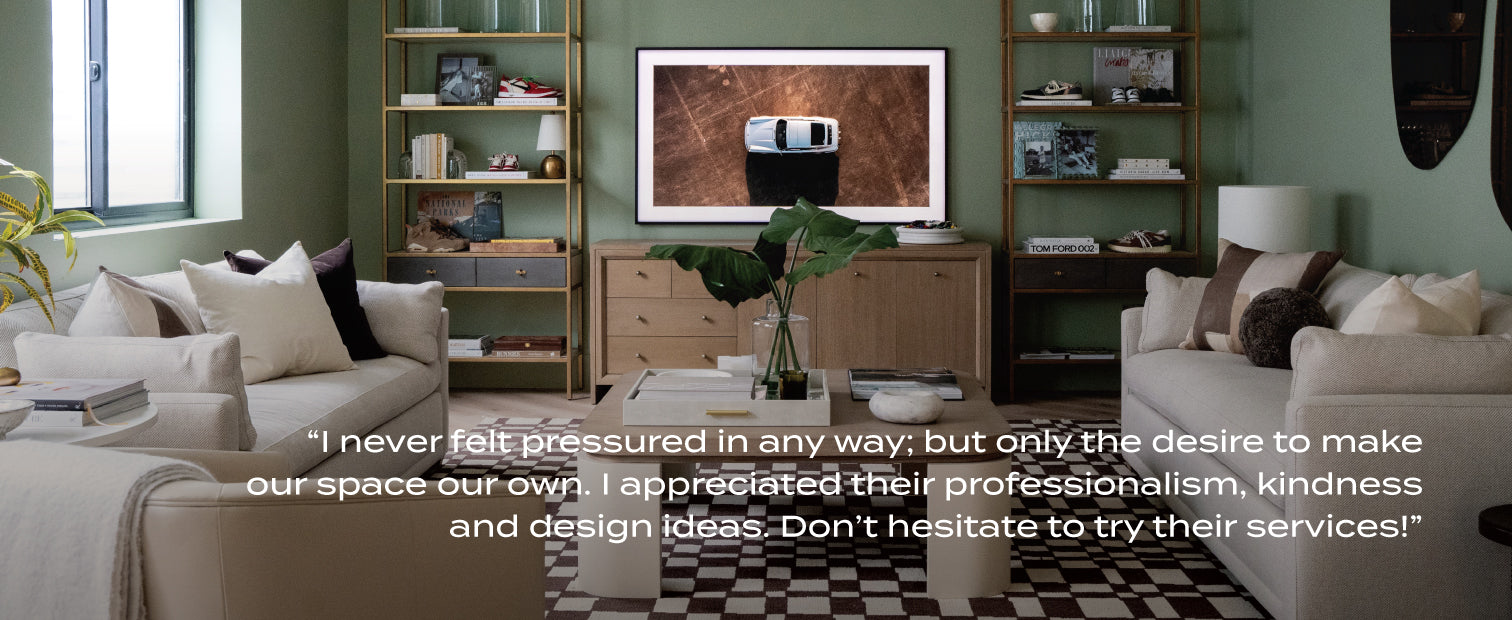 Our designers will create a personalized space plan and mockups based on your space’s dimensions, photos, and inspirational images. Then, we collaborate with you and make any revisions until we have the perfect plan for you. Once all the pieces are in place, we take care of ordering and delivering, you just have to wait for the delivery day!
