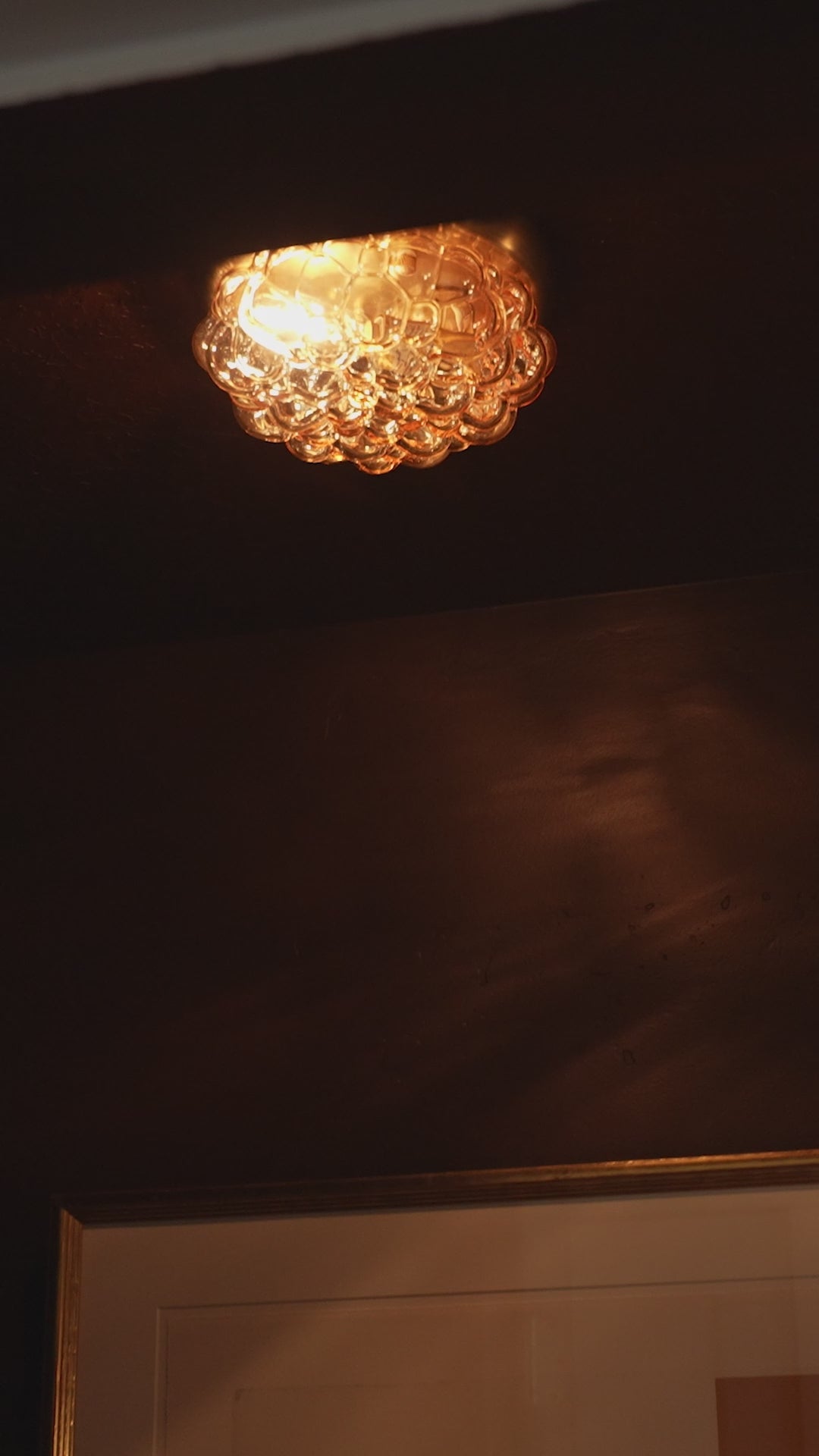 Layered bubbles of iridescent amber glass complemented by a real brass bullnose edge make the Caviar Flush Mount feel both playful and sophisticated. With a vintage, timeless look, its remarkable design adds warmth, texture, and complete luxury to any room.