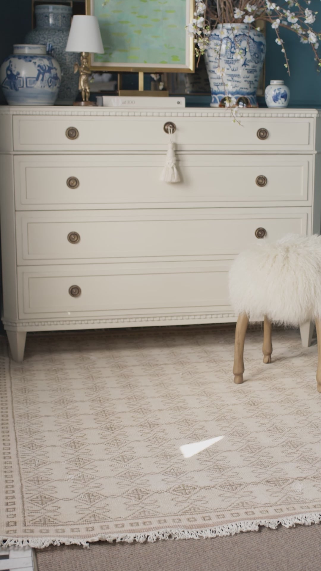 Not only is this chest the perfect color, and so stunning, it's also so functional! It has a little key that actually works to lock the top drawer. It is so pretty in an entry, but it would also be so cool as a nighstand!