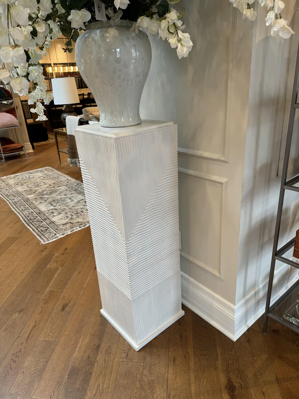 J. Bennett Collection designed by Alice Lane. This striking pedestal boasts a hand-fluted ribbing with a contrasting quarter-turn finished in a rich lacquer. Its eye-catching texture lends an elegant sophistication, easily elevating artwork or sculptures. Its versatile height styles seamlessly into living rooms, bedrooms, entryways, and offices for a tasteful, beautiful look.