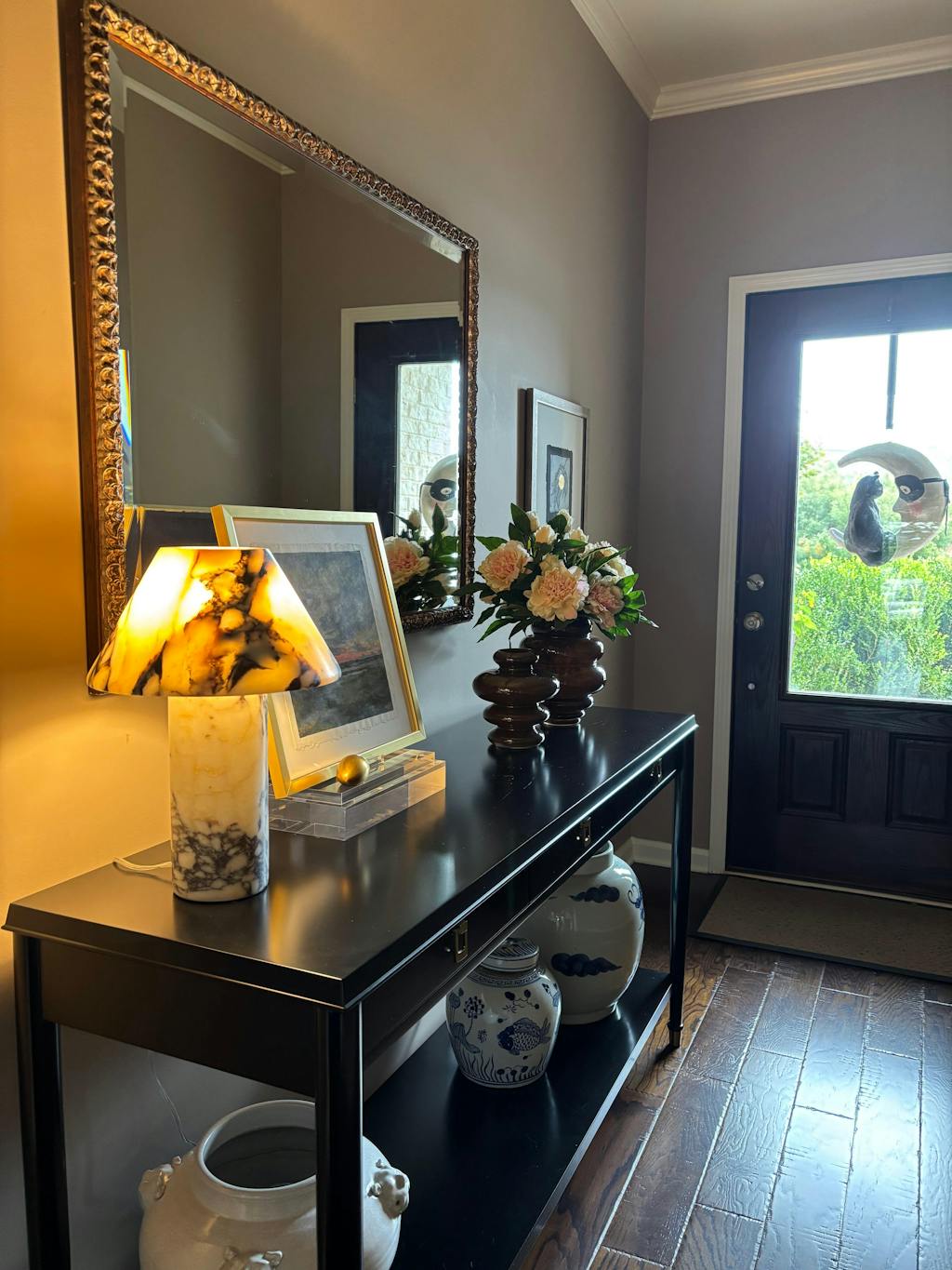 A beautiful addition to our foyer! It adds warmth and sophistication to a large entryway. The capri color is the perfect compliment to our rug and painting.