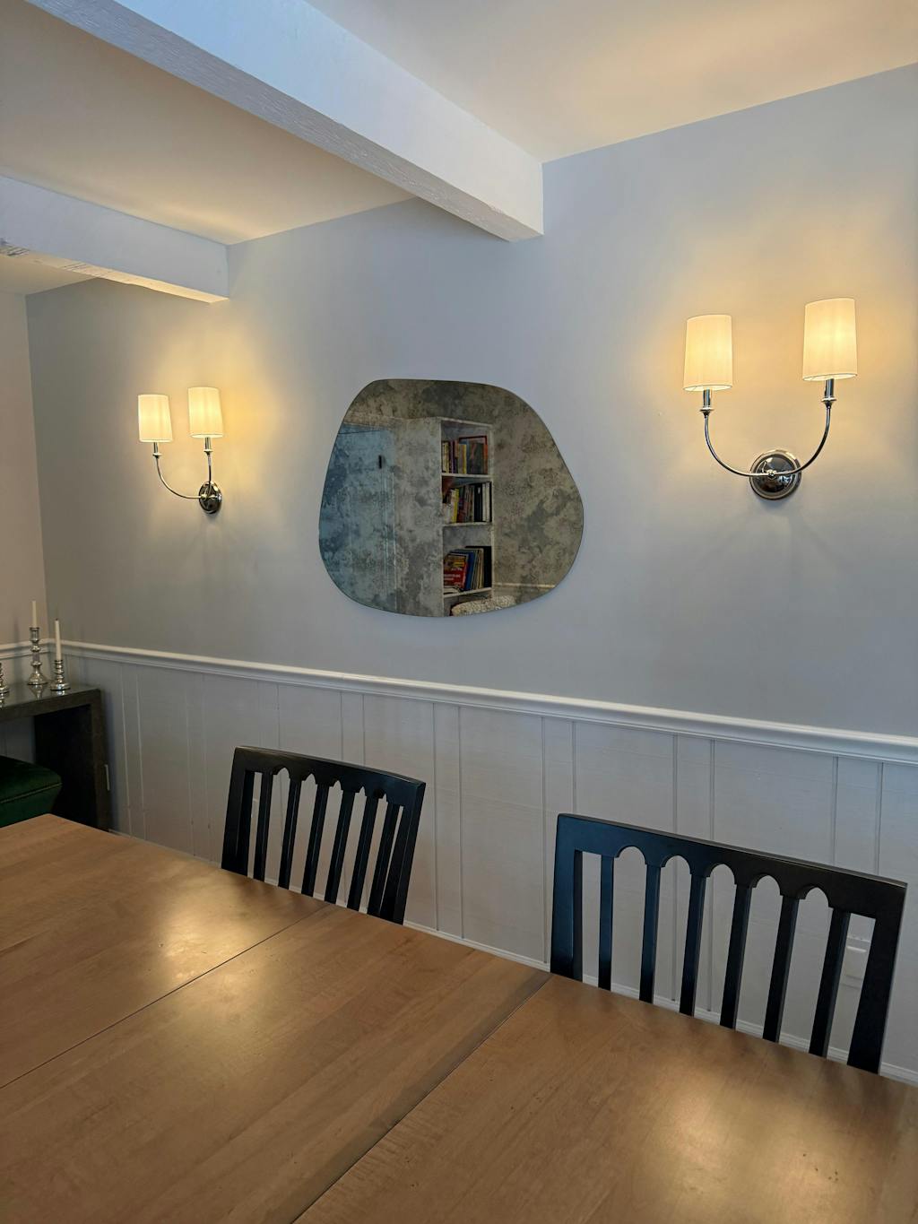 I ordered the small clear mirror to complete our dining room. It is so unique and versatile. I could use it anywhere in my home. The antiquing is really well done too.