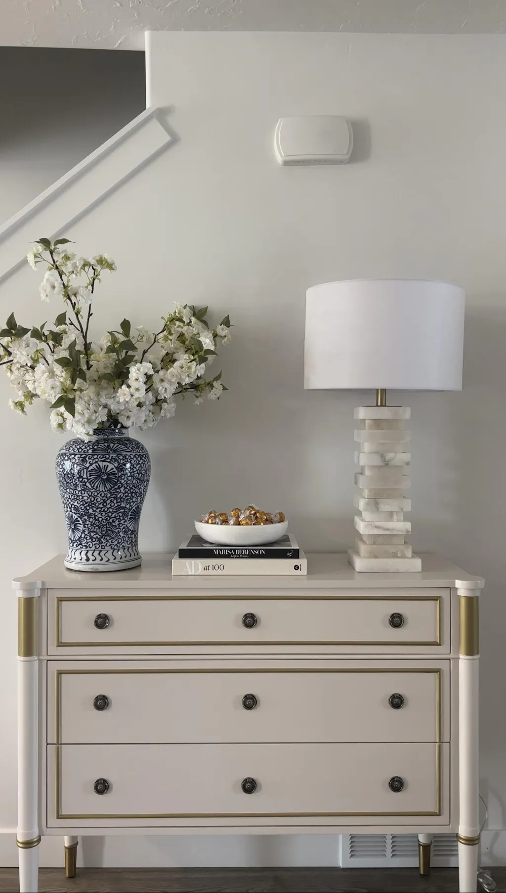 This jar is so pretty in person. It just has that classic feel that instantly elevates a space. The hand painted detailing is really well done and gives it a nice collected look on my dresser. I have it styled with the Alice Lane faux hydrangeas and it looks beautiful. It’s one of those pieces that makes everything around it feel a little more put together.